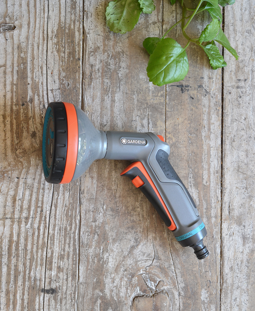 La pistola de limpieza GARDENA con control de caudal ofrece todo lo necesario para tareas de limpieza y riego en el jardín. De este modo previene que se le canse la mano.